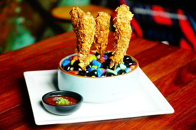 A perfect example of ‘modern Indian food’ as the chef describes it, the dish was a flavourful combination of the humble pav bhaji tucked inside a soft calzone. Next to score on our table was Captain’s Got Wings, the fiery BBQ wings were just like skipper Virat Kohli’s attitude. It gave our taste buds a spicy punch and Captain Cool came to our rescue. Matching Dhoni’s calm and cool attitude, the chef has prepared Mahi’s Mint & Penne served with a beetroot garlic bread. The minty, creamy and colourful pasta soothed our palate after Kohli’s spicy shot. As Hardik Pandya’s fans who took two crucial wickets during the match, we munched on Swag Wale Prawns. The coating of crumbled nachos gave the appetiser an extra crunch. Worth mentioning is the Curry Chicken Tikka devoted to KL Rahul. The curry patta or basil leaves marinated with the chicken gave a very distinct South Indian flavour to the tikka. The bonhomie between culinary magic and World Cup mania was sealed with Rasgulla Sunday, a confluence of raspberry and kiwi rosogulla sandwiched between almond and vanilla ice cream, that was dedicated to Mohammad Shami. What a victory, on and off the table.