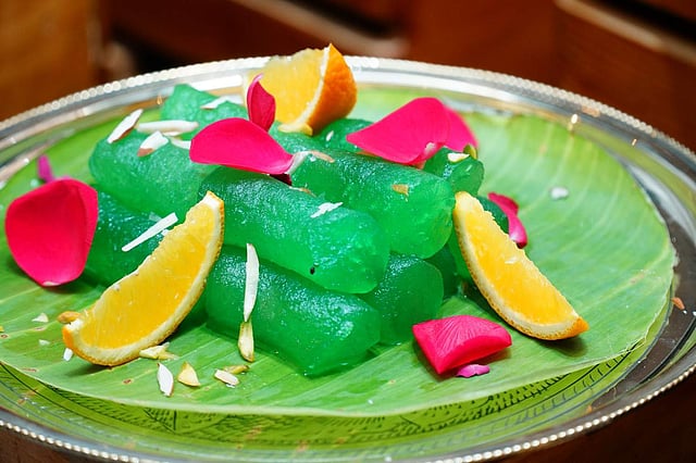 There are three varieties of biryani and on chef ’s recommendation, we tasted Arvi Biryani served with Mirchi ka Salan. The non-greasy texture of the biryani made us relish it without any guilt. The popular rezala has been given a fishy twist and we highly recommend trying Rui Maach Rezala whether you love sea food or not. More than the local flavours, what made our Iftar special were the recipes from the Middle Eastern regions that were part of the elaborate menu. We sampled Afghani chicken meatballs and loved the flavours of the tomato based gravy. From the Mezze station, chef quickly prepared a lip-smacking salad with spinach flavoured pita bread and a chickpea preparation. The whole-some salad can be a meal in itself. If you like soup then Yakhni Gosht Shorba and Arabian Chickpea Soup will give you a bowlful of warmth.