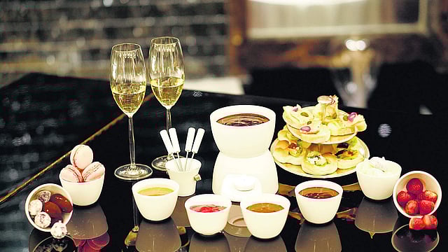 INR 1,000 plus taxes for fondue with accompaniments. Pair with servings of tea or champagne (requires prior reservation). Savouries are priced at INR 225 upwards. On till December 31.