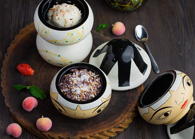 Sticky rice paired with fruit has proven to be a delicious idea. And we suggest you try every variation till you find your go-to. Soy Soi’s Khao Niew Dum — black sticky rice pudding paired with lychees and tender coconut ice cream is oh so good. The rice is filled with antioxidants and is naturally sweet, with an earthy aroma when cooked. Rs 245. A close cousin of this dish is the Khao Niew Wahn (Thai sticky rice with mangoes) which you can try when in season at Benjarong, otherwise, the dessert is served with seasonal fruits. Rs 218.