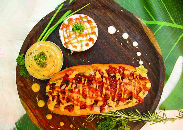 “For folks who love their pork, and don’t find it on too many menus, this is great value in terms of cost and taste,” says Sagar Sadhwani (29) who also owns the Pappa Roti franchise in Phoenix MarketCity. There are two other female partners, who wish to remain anonymous, we are told. Sagar who studied business in France tells us that recipe trials went on for a month before launch, with buns sourced from a local homebaker and frankfurters imported from Germany.