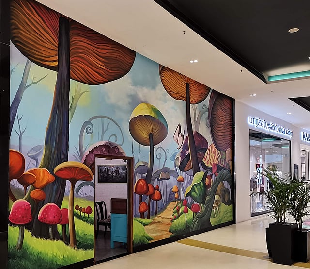 You might have to literally fall into the rabbit hole that leads to The Hatter’s Table. We say this because there isn’t any signage up yet, if you’re a shopper wandering the ground floor of VR Chennai. So here is how you find this mysterious wonderland of a restaurant. Clue: look for a garden on the wall. Once you enter (fortunately there is no password) — there is much to take in. Plush sofa chairs of multiple heights call out to us for a game of where-shall-we-sit-first? Look out for checkered tables you could play chess on, clocks of varied sizes and luminescent lanterns that seem to descend like magic. Amid it all is a showstopper of a chandelier — made entirely of cups and saucers!