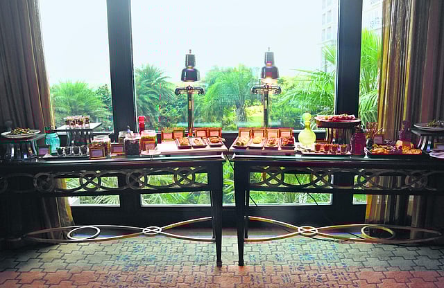 Those who have been to Library Blu at The Leela Palace Chennai, will remember the subdued elegant lighting and the remarkable stock of spirits at the plush bar. Well, the latter has only gotten better while the former has shifted to sunshine and laughter — thanks to the all-new Sundowner offers at the bar. With an extensive menu that includes interesting short eats, salads, a charcuterie board and pickles, we find that the heavy curtains had been drawn — allowing the glorious golden hour to stream in through the tall bay windows. “We wanted to exploit this great view of the backwaters that we enjoy here and also bring in some local flavours,” explains executive chef Rohit Tokhi, pointing at the fabulous view of the shoreline as we catch up over the tapas spread specially curated for the Sundowner t h at ’s ava i l abl e on the weekends.