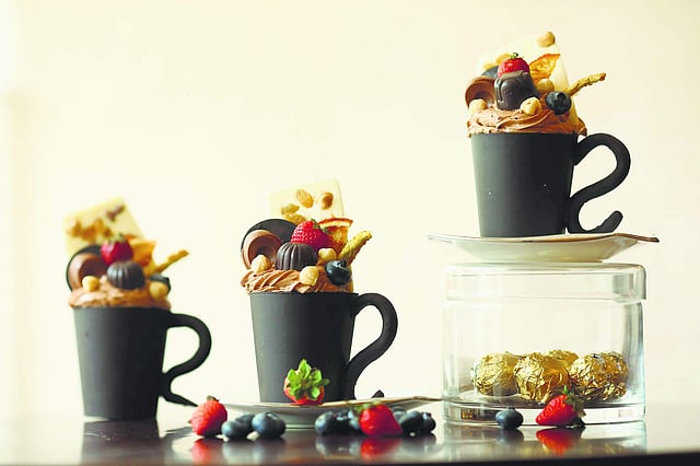 You’ve had chocolate in a mug. But have you ever sipped on a ‘chocolate mug’? Crafted by pastry chef Ravi Varma, these exotic dark Swiss chocolate creations are filled with ruby raspberry ganache, hazelnut praline, vanilla cream topped with dehydrated berries and caramel dredged nuts. Personalize by requesting a photograph or message pasted on the mug. At La Patisserie, Taj Coromandel. February 11 to 14. INR 2,000 all-inclusive for two pieces.