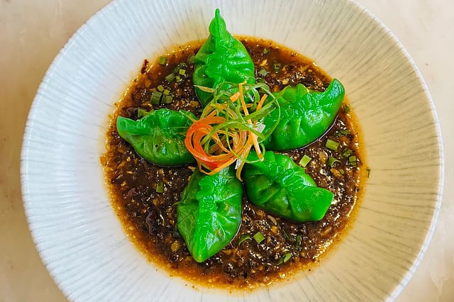 This was followed by the Asparagus water chestnut veg XO. This crunchy green-coloured plum and ginger-infused vegetable dumpling was not only light on the palate, but its crunchiness made it seem like a dance of textures in the mouth.