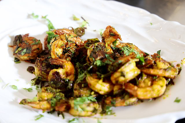 Soon, the buffet counters opened. We began with some crisp appetisers. The Mushroom 65 was crunchy, spicy, and exactly the kind of thing that makes you reach back for seconds without thinking. Its texture was delightful, and the chilli-ginger notes lingered beautifully. But it was the Yeral nei roast—succulent prawns slow-roasted in ghee—that stole the appetiser round for us. Rich, silky, and aromatic, this dish was an indulgent dish.