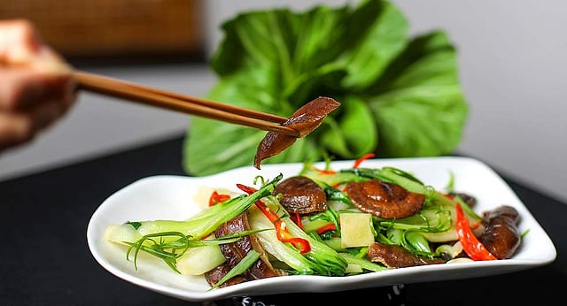 The highlight of the menu is Shanghai Roast Chicken; this delicacy makes one imagine a golden-brown poultry fresh off the skillet, whose skin is crispy and crackly and whose meat is tender, moist and flavorful. The main course shows off classic dishes like the Stuffed eggplant chili bean, Exotic mushrooms, Black peppery lamb and the Steamed Pomfret— just as the vendors serve it on the streets of Beijing.
