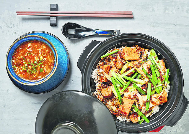 Much like this curious name which makes reference to the giant panda (a symbol of peace in Chinese folklore) — not a lot on this menu are names you expect to see. How about a Luffa and Flower Fungus for instance? This turns out to be a combination of ridge gourd and white fungus (which is actually quite light and crunchy) tossed in ginger, garlic, soy, Shaoxing wine and sesame oil. A lovely and novel side (compared to say a conventional babycorn and mushroom). It pairs beautifully with a Claypot Chicken and Rice (so much more flavourful than Fried rice!). Much of the credit to those deeply infused pockets of flavour, we’re told, goes to the shiitake mushrooms in the mix.