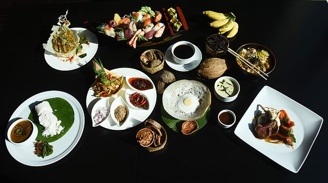 The Egg Roll counter is the Lucknowi chef’s favourite — a live station for stuffed omelettes — and digging into a chicken-stuffed version we agree with his choice. As we lather some paprika flavoured Chilli Butter on to a paneer stuffed foccacia slice, we realise the meandering buffet spread has more live stations now. From the salad counter, we pick a summery delight with juicy slices of orange, soft cheese and greens. We barely manage a bite before we head to the Puttu and Kadala counter, where the former is as fluffy as a cloud. Next we try the unique Ragi Pidi (think kozhukattai, made of ragi flour instead of rice). The accompanying Andhra chutney, true to its reputation, is dynamite! A sip of the refreshing elderflower ice tea eases the fire on our palate.