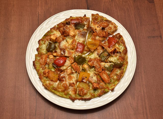 While the café has its array of pizzas we tried the Cilantro chilli veg pizza. A thin crust offering, the pizza is topped with cilantro and chilli sauce, ample parmesan cheese, red capsicum, paneer and jalapenos. Non-vegetarians can opt for the Barbecue chicken pizza with olives, chunky barbecue chicken pieces, jalapenos and parmesan