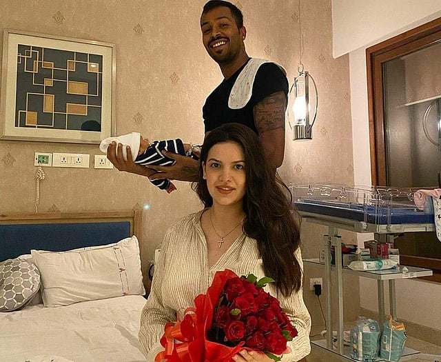 On Sunday, Serbian dancer-actress Natasa Stankovic took to Instagram to share a photo of her boys. In the picture, Natasha can be seen sitting on the bed holding a bouquet of red roses while her fiance Hardik Pandya is standing behind her, cradling their newborn.