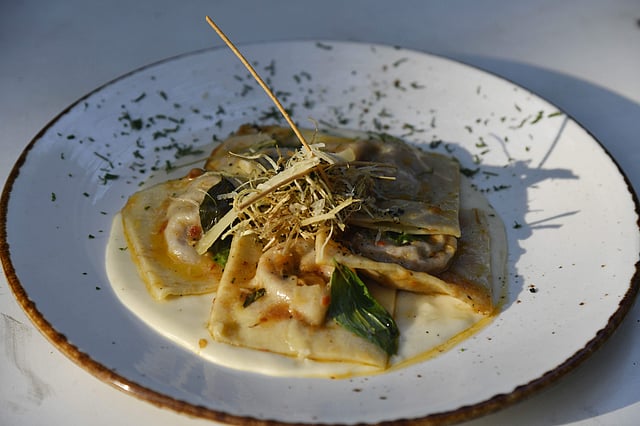 We sipped on a Watermelon Mojito and waited for our pasta to arrive. The Brown Butter and Sage Ravioli came filled with a classic Tuscan soup, papa al Pomodoro. The flavours of tomato and garlic-based stuffing were balanced with the cream sauce base and herb oil.