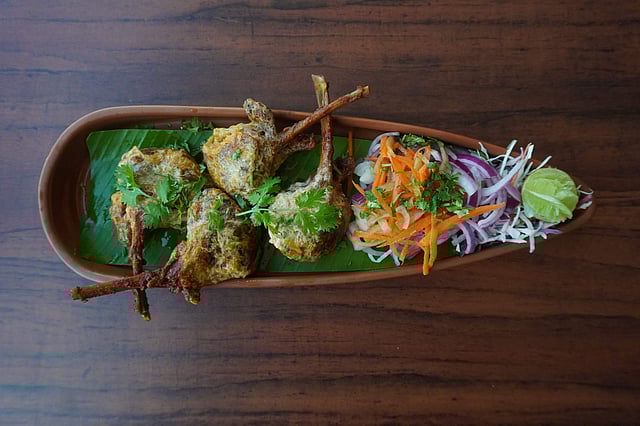 We sniffed a dream of the tropics, from Jampandu Roi, a fresh guava mocktail, for which barman, Lalmohan Rao blended a pulp of guava with green chilli, hot tabasco sauce, black pepper and salt. Taking in the florals and subtle spices, we sampled another drink, Punch Falaknuma. The beverage was extracted from most of the watermelon pulp and strained into a watermelon rind instead of a fancy glass. It embodied hints of honey, basil and ginger juice. Lalmohan had also meticulously chopped the watermelon in half and diced the flesh. Then, Sous Chef Venkat Rao employed his culinary erudition and lent the food joint’s South Indian cuisine its novel trustworthiness. A non-Hyderabadi may slip into authentic Telangana cordon bleu with the regional soup Kalla Koora. Before serving in a porcelain ivory bowl, Venkat tossed mutton legs in cinnamon sticks, brown cardamom, peppercorns, mace, bay leaf and cumin seeds to uplift the speciality.