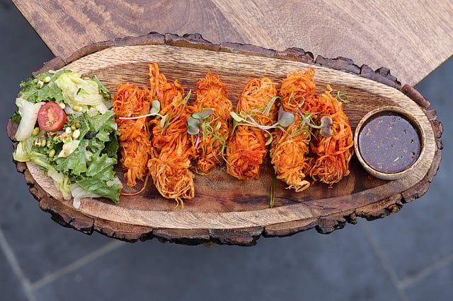 The newly-opened white bungalow-turned-bistro at Jubilee Hills stays true to its Italian moniker, Mairu, which derives its decor impetus from moorlands. The eatery rendered life into this concept in its outdoor lunchroom that shelters an uncaged playful parrot that was feeding on oats and barley. It sat on our shoulders, looking resplendent with its beady black eyes. But, before we could pamper it, our bird flapped its wings and scuttled away. The ivory-themed surrounding also promised us an Asian-Continental repast whose gastronomic highlights were the subtle savours of olive oil, marigold petals, fenugreek, bay leaf and mint.