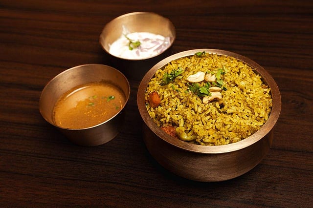 We started with some appetising starters like Mirchi Bajji, a famous street-fried snack prepared with green chillies doused in gram flour batter and deep-fried to perfection. The other dish Palkatti Polichitti, where paneer coated with spices, came wrapped in a banana leaf as it was tossed on a pan, spelt indulgence. We also tried Mushroom Pepper Fry that had us drooling. We tried a thali that featured Rava Laddu, Kosambary Salad, Dill Vada, Chapatti, Mix Veg Kurma, Gobi Masala, Bendi Fry, Kanda Poriyal, and Mango Rice. The Birakai Pachadi, Coconut Pachadi amped up the taste. The meal was accompanied by steamed rice, Tomato Pappu, Vankaya Pulusu, Khushabu, Artha Archa Sambar, Pepper Rasam, Perugu, Paruppu Payasam, and Gulab Jamun for dessert. We relished the Dindigul Mutton Biryani, a culinary gem from Tamil Nadu. Made with Seeraga Samba rice, it’s a symphony of flavours that can make your heart sing. Another delightful treat was the AOD (Aroma of Dakshin) Koli Biryani, a fragrant rice dish infused with heavenly spices and tender chicken pieces. The secret to its aromatic allure lies in the ground paste of greens, ginger, and garlic. For vegetarians, the Karnataka Tarkari Palav is a must-try, featuring a special green paste of herbs and spices that elevate the aroma and flavour of the pulao. There were other amazing delicacies including Prawn Ghee Roast, Koli Kabab, Gongura Mamsam and others.