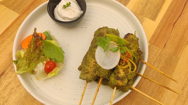 After this, we opted for Veg Thai curry, a wholesome medley of vibrant vegetables simmered in aromatic spices. Paired with perfectly steamed rice, it was a match made in culinary heaven. We also chomped on the crispy Burmese parcels, golden pockets stuffed with melty cheese, sweet corn, and spices served with a zesty dip.