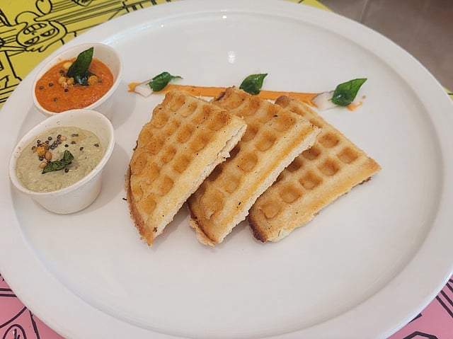 We began with the Waffle appam delight, where soft, crisp-edged waffles made from appam batter were served with a tangy tomato chutney. It was light, fresh, and full of flavour. A side of coconut chutney added a creamy touch that felt warm and familiar, something you’d happily return to.