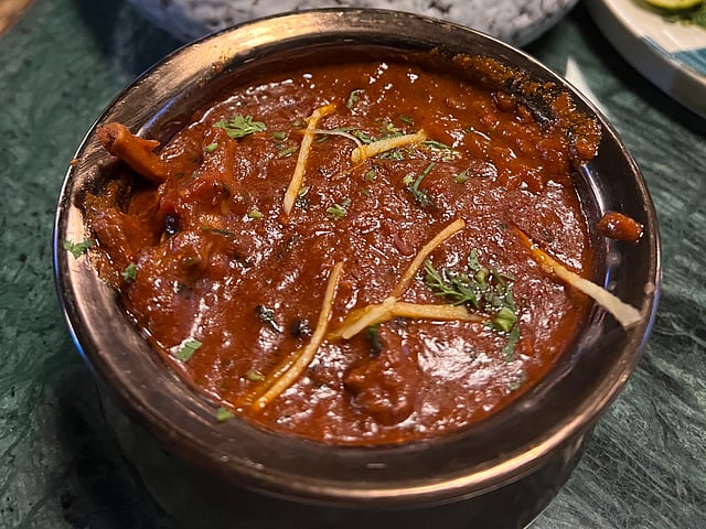 We paired our drinks with the Andhra chilli chicken, marinated in a delicious spice mix of green chillies and herbs, topped with fiery fried red chillies. The Kundhapur ghee roast in prawns (comes with a choice of chicken, seafood or vegetarian variants) was creamy.