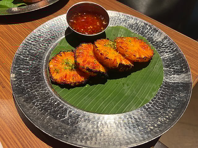 Soon, we took a peek at the live grill station outdoors, which also had a bustling bar counter adjacent to it. From the grill came a host of treats, starting with the Grilled pineapple — sweet, juicy with a touch of spice in every bite. The Korean gochujang grilled chicken was a heady melange of flavours in every bite. The eatery has also retained some of its old, OG favourites like the chicken 555, which was a winning dish in our books.