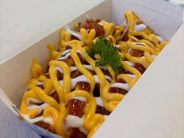 On the side, the African peri peri loaded fries came crinkle cut and chaos coded — peri peri powder everywhere, three sauces drizzled on top (tangy red, mayo and cheese) and yet the fries held their crunch. Total crowd pleaser. A detour into their healthy bowls brought us the Meaty mighty salad — lettuce, cucumbers and a riot of veggies, all tied together with their OG sauce, a tangy and creamy number that showed up before in dip packets served with the burgers.