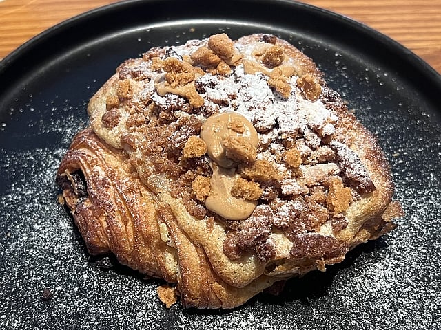 From the sweet variants, the Biscoff baby is layered, topped with Biscoff cream, crumble and powdered sugar all coming together to form one buttery bite. A must-try at the spot, however, is the Créme brûlée. We cut through the crust to take a bite of the dreamy custard, only made better with the flaky, buttery pastry making it rich, indulgent and deeply addictive.