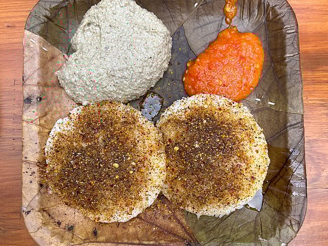 We tried the Ghee podi idli first, served with a thick peanut chutney and Erra karam - a delightfully pungent and zingy hand-pound garlic chilli paste that is a staple in Rayalaseema’s households.