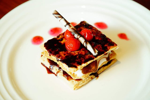 From the UK, the binge-worthy Beer Battered Fish made from Kolkata Bhetki made a royal entry on the table. The hot and crisp appetiser, when paired with a chilled beer, is a combination made in heaven. Resisting the temptation to polish off all, we tried their hot seller Barbeque Chicken Wings that gave another punch of striking flavours to our taste buds. Their Cream of Brocolli soup is also a favourite among their customers, we were informed while serving the pista green soup in a bowl. Wary of breaking the chain of good flavours on our taste buds we tried a spoonful and was surprised with the chef ’s acumen. The creamy and healthy soup with balanced flavours can be counted among comfort food. With Potato Bhravas, we were back to another round of zesty gastronomy. A Mexican delight, the crispy cubes of potatoes tossed in spiced and served with a spicy tomato sauce, draws a similarity to the Indian chaat, sans tamarind chutney and yoghurt. It was time for sweet endings and we were torn between Chocolate Praline Mousse and Strawberry Mille Feuille. While the former is heavenly, to say the least, the latter a bonhomie between crackers, strawberry jam and cherries is sinful. Sure enough, in conclusion, their vibrant wall art stating Mocambo Khush Hua!, from the hit film, Mr India, resonated with us perfectly.
