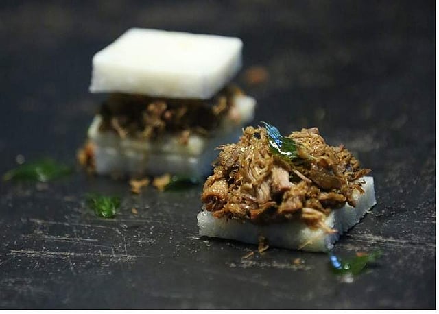 She delves into the details of their delicious adventures, with stops in over eight major cities from Kannur to Alappuzha, as I slurp down on their delightful hand-picked green mango slush (rimmed with salt and chilli powder). The beverage works wonders when consumed alongside a platter of piping-hot, crispy kappa fries and piquant chamanthi. If you’re looking for something heavier, opt for their duck roast sliders—an excellent sweet-spicy take on vattayappams. Still not satiated? End your meal on a high note with their take on chakka ada. The steamed rice wrap packed with gooey jackfruit filling is indeed delightful.