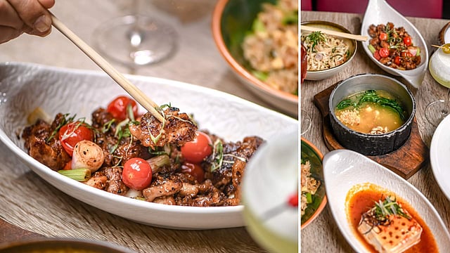 Embark on a culinary journey featuring delectable creations such as the mouthwatering Chiu Chou Potato, the tantalising Chicken Black Pepper, the succulent Lamb Chop with spicy sauce, and the aromatic Baby Cabbage Rice. Each dish is a symphony of flavours meticulously crafted to delight discerning palates.