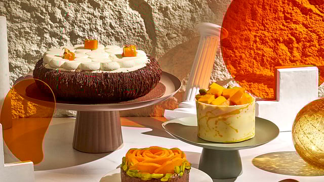 Golden Harmony Pastry – A decadent duet of flavours where rich milk chocolate mousse embraces a vivid mango compote. It's indulgence with a tropical twist, made for those who love their desserts with depth and drama.