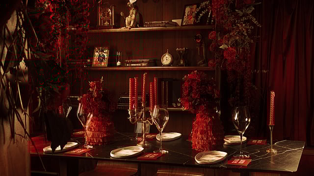 Scarlett has already earned a place in the area, partly for how it understands the Bandra rhythm: casual but refined, stylish without trying too hard, always happy to welcome you in, even when your hair is frizzy from the humidity. Tucked inside this familiar bungalow — the sort you’d pass daily and swear you’ve attended a friend’s birthday at years ago — sits this tiny ten-seat cocoon. The Red Room doesn’t announce itself. It murmurs, like a private dining room in an old Goan home, where an uncle hosts weekend lunches with feni jokes and improvised menus.