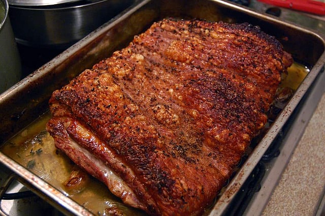 - Cook in the oven for 60-80 mins or until the belly is tender and cooked throughout.