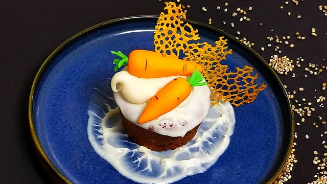 Gradually add the dry ingredients, mixing until just combined. Fold in the grated carrots, crushed fresh rosemary and chopped nuts until evenly distributed.