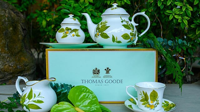 Two storied legacies come together this Christmas Eve as Thomas Goode, the revered British tableware icon, collaborates with India’s Makaibari tea estate to unveil the Camellia tea set. This limited-edition collection, inspired by Makaibari’s lush tea gardens, features intricate designs and a touch of opulence with 24-carat gold plating.