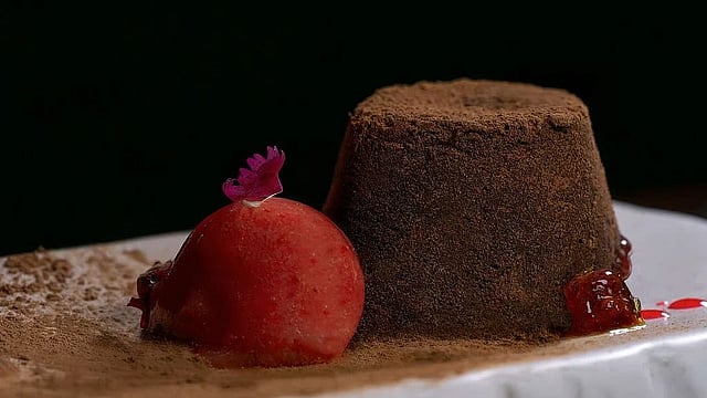 On Chef Pandey’s coaxing, I try things vegetarian. The Ratatouille with Raja Mirchi Corn Bread is decent. The Edamame and Truffle Dimsum, a symphony of velvety edamame and decadent truffle, wrapped in a delicate embrace of haute-cuisine indulgence, is truly delicious.