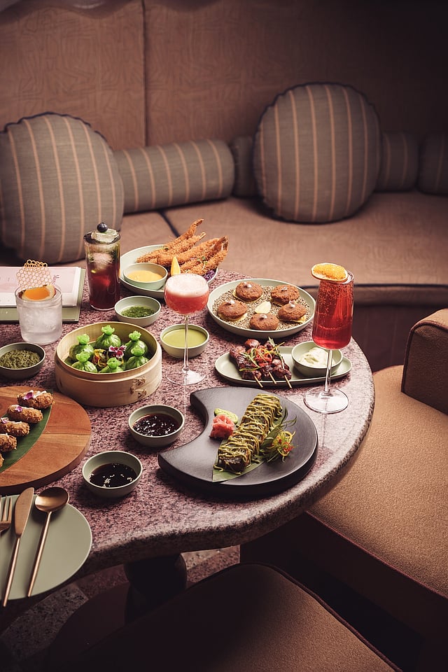 Conceptualised by Sonali Sharma as a homage, the 8,000 sq ft complex, designed by Pantone Collective and architect Tanya Chutani, is a lesson in architectural dualism. Brutalist geometry and local workmanship come together in monumental concrete façades and sandstone texture-like patterns, evoking Jaipur’s iconic structures but with a decidedly contemporary twist. Muted rouge tones inside, scalloped seating and a showstopping 360° bar evoke a spiritual, cinema-like ambiance.