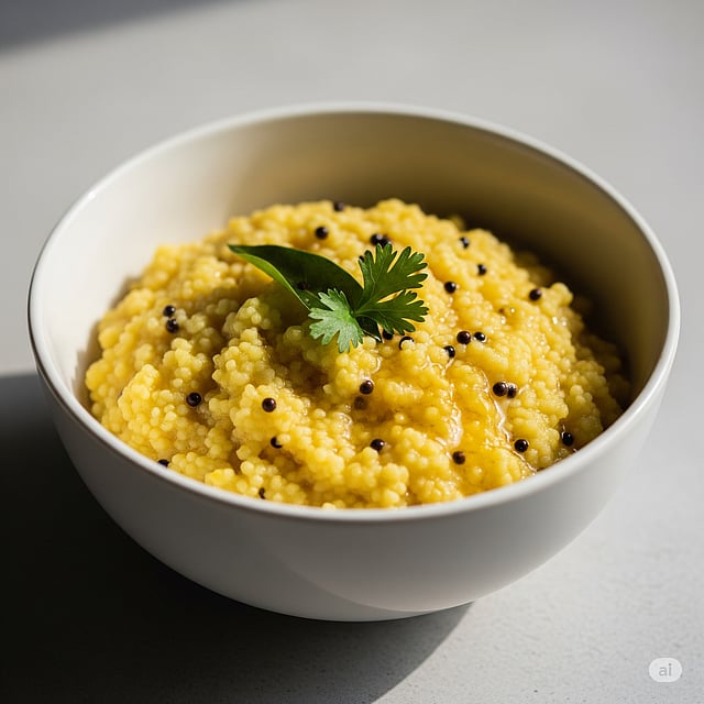 Millet Pongal Bowl with Tempered Ghee Tadka: Taking a cue from Tamil Nadu’s beloved ven pongal, this bowl swaps out rice for foxtail millet, making it a healthier, fibre-packed option. It’s topped with a ghee-tempered blend of mustard seeds, curry leaves, ginger, and black pepper. Toss in some roasted peanuts and sautéed spinach for an extra nutritious kick.
