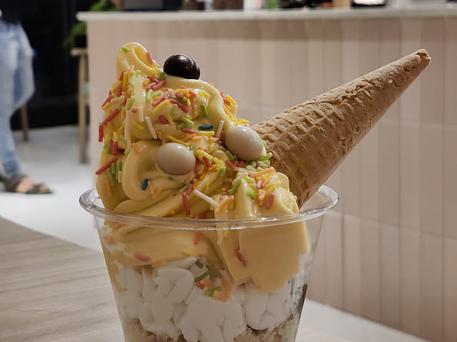 Just the word ‘softy’ brings back a zillion memories, mostly of the little creamy indulgence that captivates us right from the time it’s swirled into a cone, to the first taste that beckons a smile, no matter how bad the day is. This week, we found a joint that’s bringing the magic of a soft serve back, with some much needed upgrades. We stepped into Two Folks to find an extensive coffee menu on the walls atop two shiny machines, ready to swirl out one of our favourite treats. One can choose from waffle cones, waffle cups, standard paper cups, cookies and even ‘Wafty’ with waffles and ‘Crofty’ with croissants to enjoy the soft serves which come in six flavours. We started off with the Vanilla soft serve, served in an edible waffle cone cup; an ingenious idea to reduce waste. The ice cream was every bit creamy, while the cone was sturdy, sans any sogginess.