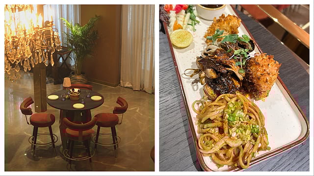 The muted colour palettes and warm lighting offer a sense of intimate luxury. Soft and layered browns and reddish tones set the tone for high-energy nightlife. A central filigree-inspired feature, French wallpaper, chandeliers and period-style lamps balance privacy and openness, which can elevate DJ nights. And plush seating options, well-spaced tables, and a tasteful lounge area make it ideal for date nights, quiet celebrations, or business dinners
