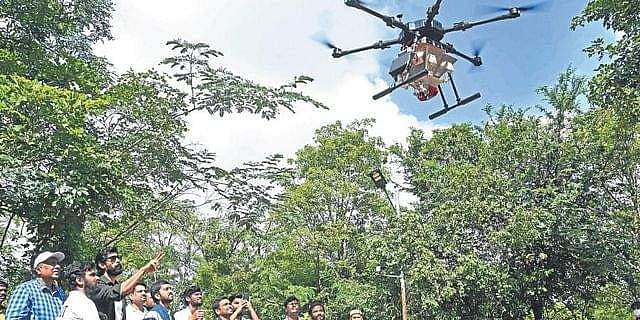 On the morning of October 1, Marut Drones, a Hyderabad-based technology startup, aimed high. A drone they have christened the ‘seedcopter’ dispersed 1.5 lakh spheres over the KBR National Park in Hyderabad. The spheres made of clay and manure contained seeds of custard apple, gooseberry, tamarind and bamboo.
