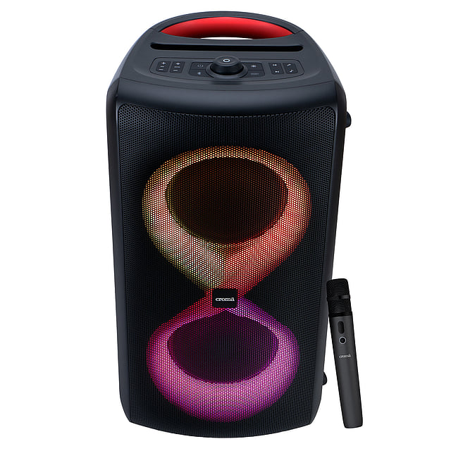 Croma’s big 200W Party speaker (CREA120DJA301501) is ideal for having a blast whether at home or elsewhere. Setup is easy and it connects via BT 5.3 with any of your smart devices (phones, tabs PCs etc), it can even connect with multiple devices at once. There’s also a nifty 2.4GHz wireless Mic for easy Karaoke sessions. The device comes with a 6000mAh battery which goes for a few hours depending on the volume. The Croma speaker can be carried easily with the two built in handles and has excellent operation buttons on top for usage. Sound quality is acceptable with clear Mids, Highs and Bass with an emphasis on absolute loudness to keep the party going. This Hi-Fi party speaker has everything going for it, perhaps the pricing could be a little lower otherwise a good buy. INR 24,990 croma.com