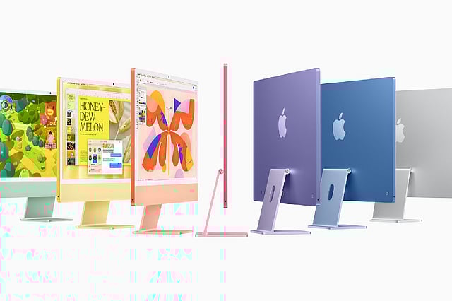 Available in a range of stunning new colors, the 24-inch 4.5K Retina display also includes a nano-texture glass option. The iMac features a new 12MP Center Stage camera with Desk View, up to four Thunderbolt 4 ports, and color-matched accessories including USB-C.