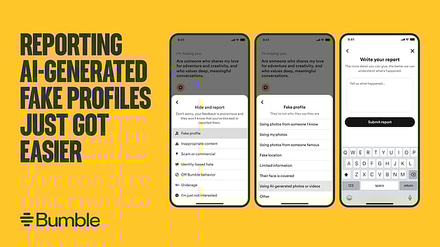 “An essential part of creating a space to build meaningful connections is removing any element that is misleading or dangerous. We are committed to continually improving our technology to ensure that Bumble is a safe and trusted dating environment. By introducing this new reporting option, we can better understand how bad actors and fake profiles are using AI disingenuously, so our community feels confident in making connections,” says Risa Stein, VP of product, Bumble.
