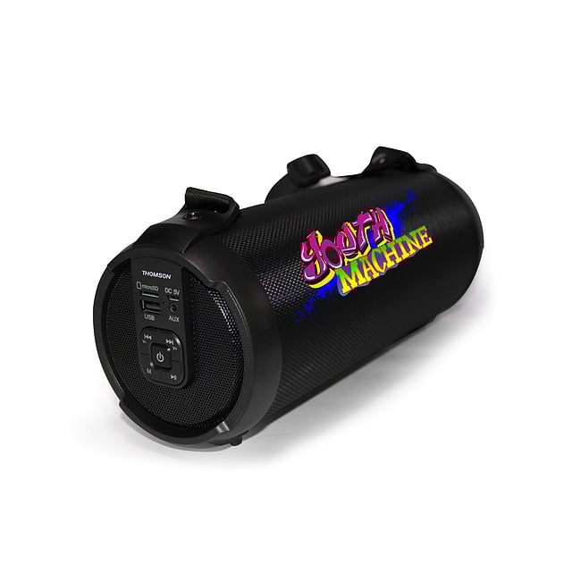 Thomson's Youth Machine Boombox is a portable speaker aimed at those who want to have some fun and make some noise. The “free-spirited” speaker looks energetic and vibrant with an additional Neon green shoulder strap to get the juices flowing. The Boombox comes in a mid-size form factor with 2x3 inch woofers and dual passive radiators. It's also IPX 5 rated for general water resistance and dust proofing.