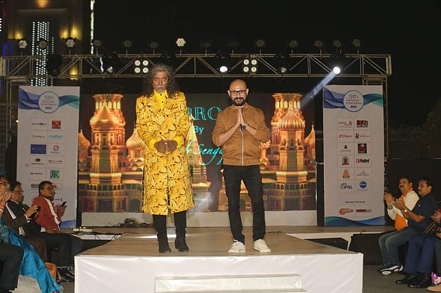 The Spring Summer 2023 collection Aabroo by designer Arnab Sengupta at Novotel rooftop saw a riot of fresh hues of yellow on the ramp.