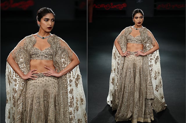 Bhumi Pedkenar with Ritu and Amrish KumarThe showcase reinterpreted artisanal traditions for the woman of todayAt its core, “Threads of Time: Reimagined” is a conversation between past and present, a powerful homage to Indian textile heritage retold through the lens of modern coutureFluid bridal ensembles sat alongside sharply tailored separates, corseted jackets were paired with delicate sheers, and vintage florals came alive on flowing silks and velvet scarves, every look capturing the essence of the Ritu Kumar legacy with a bold, contemporary voiceFrom crystal-draped silhouettes to earthy-toned prints, from muted golds to deep scarlets, each ensemble was a story of nostalgia reimagined with relevance and intent