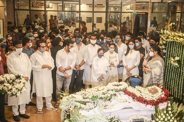 Senior leaders of CPIM including Surya Kanta Mishra and Biman Bose attended the last rites of the actorThe deceased veteran actor was bid farewell in full honour with a gun salute at Keoratola crematoriumChatterjee's daughter Poulami pays her last respectA glimpse of the actor's body being carried to the venueActor Paoli Dam pays her tribute to the legendDirector Anik Dutta was also thereActor Rudraneel GhoshDanseuse and social activist Alakananda Roy laying garland on the bodyMinister Firhad Hakim joined the other leaders of his party to pay tribute to the actor