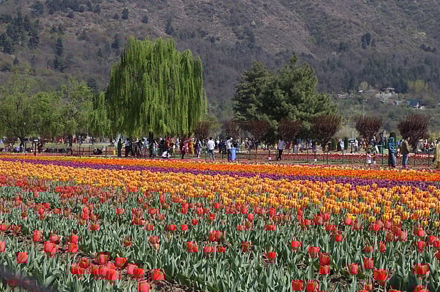 A view of fully bloomed Tulip flowers in Srinagar. (Photo: IANS)