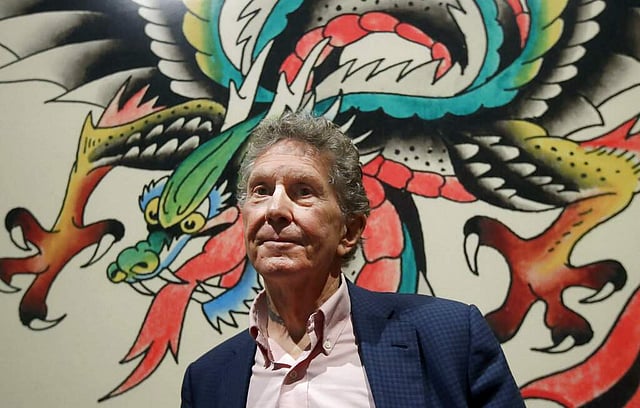 Ed Hardy at a preview of Ed Hardy: Deeper than Skin at the de Young Museum in San Francisco, a new show that sheds light on the man as a prolific artist and tattoo pioneer. (AP Photo/Jeff Chiu)
