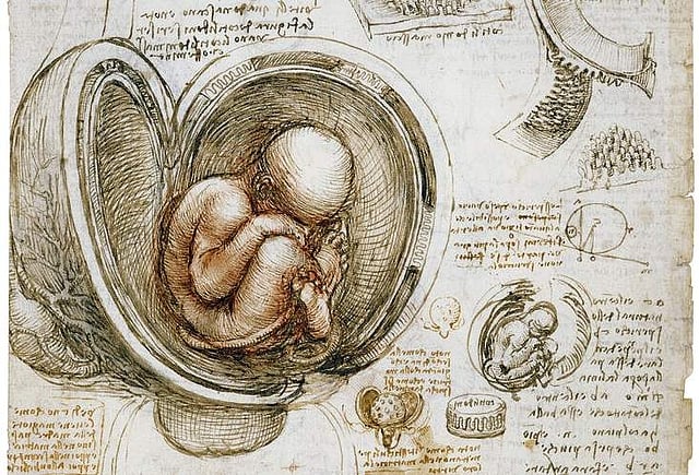 This undated handout from The Royal Collection Trust shows a foetus in the womb by Leonardo da Vinci, as part of the Royal Collection, at Windsor Castle in Windsor. (The Royal Collection Trust via AP)